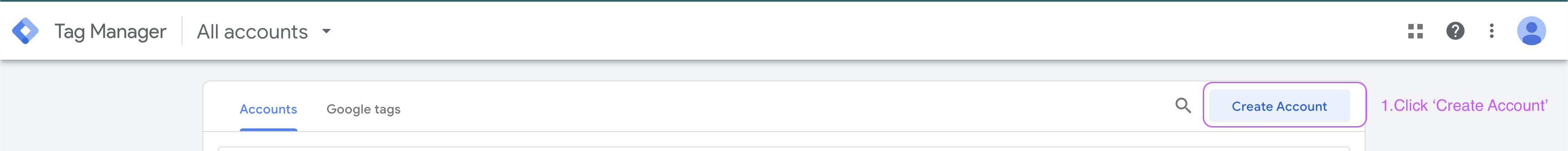 Create a Google Tag Manager Account: Go to Google Tag Manager and sign in with your Google account. Click "Create Account" and follow the setup wizard. Enter an account name for your organization.
