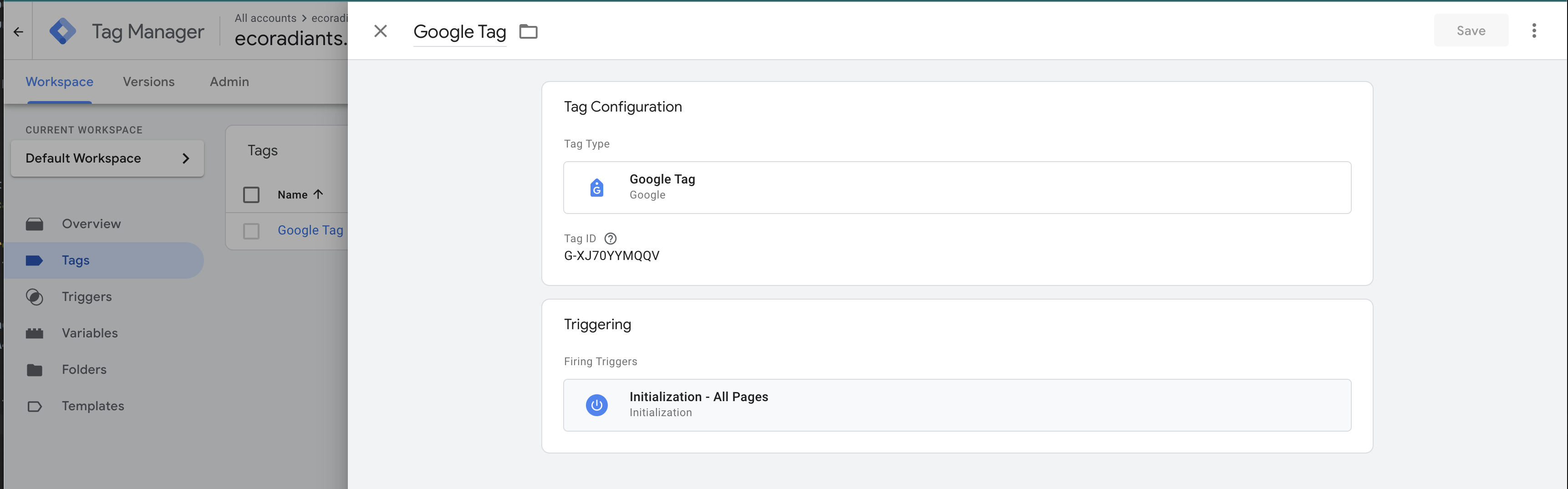 In GTM:Inside your Google Tag Manager container, go to "Tags."Click "New" to create a new tag. Choose "Google tag"